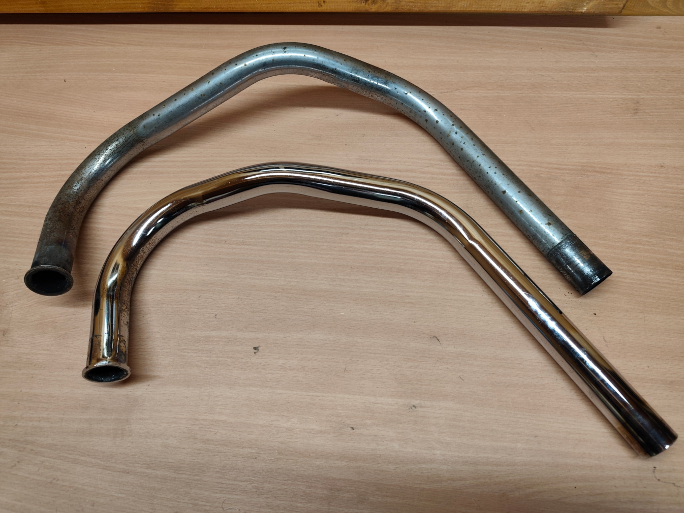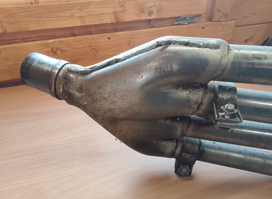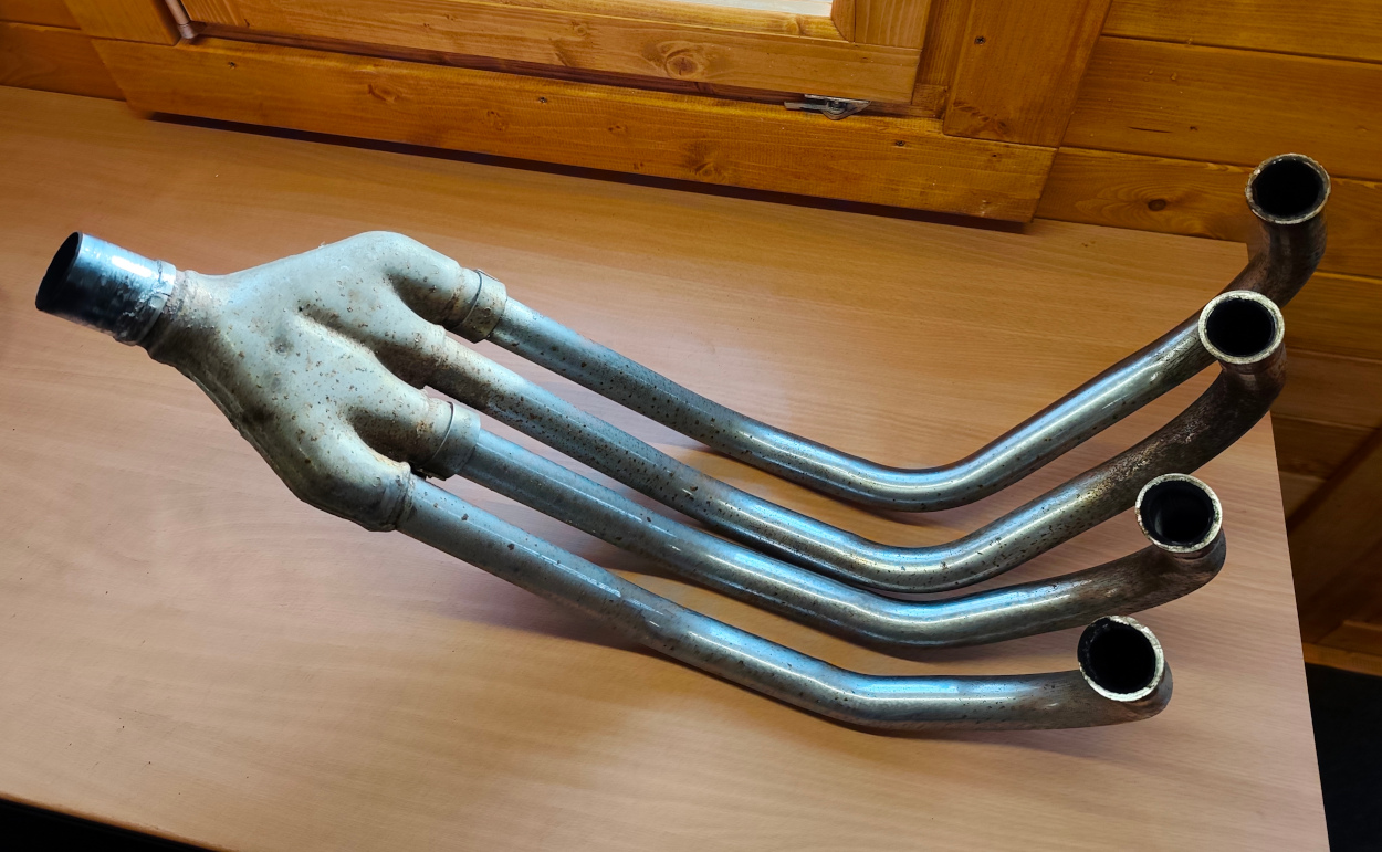 Einer der Krümmer wies vor längerer Zeit einen Bruch am oberen Ende (Anschluß an den Zylinderkopf) auf, dies hatte ich geschweißt und plangeschliffen, der Zustand hier muß auch geprüft werden. Von außen sichtbar war dies nie.