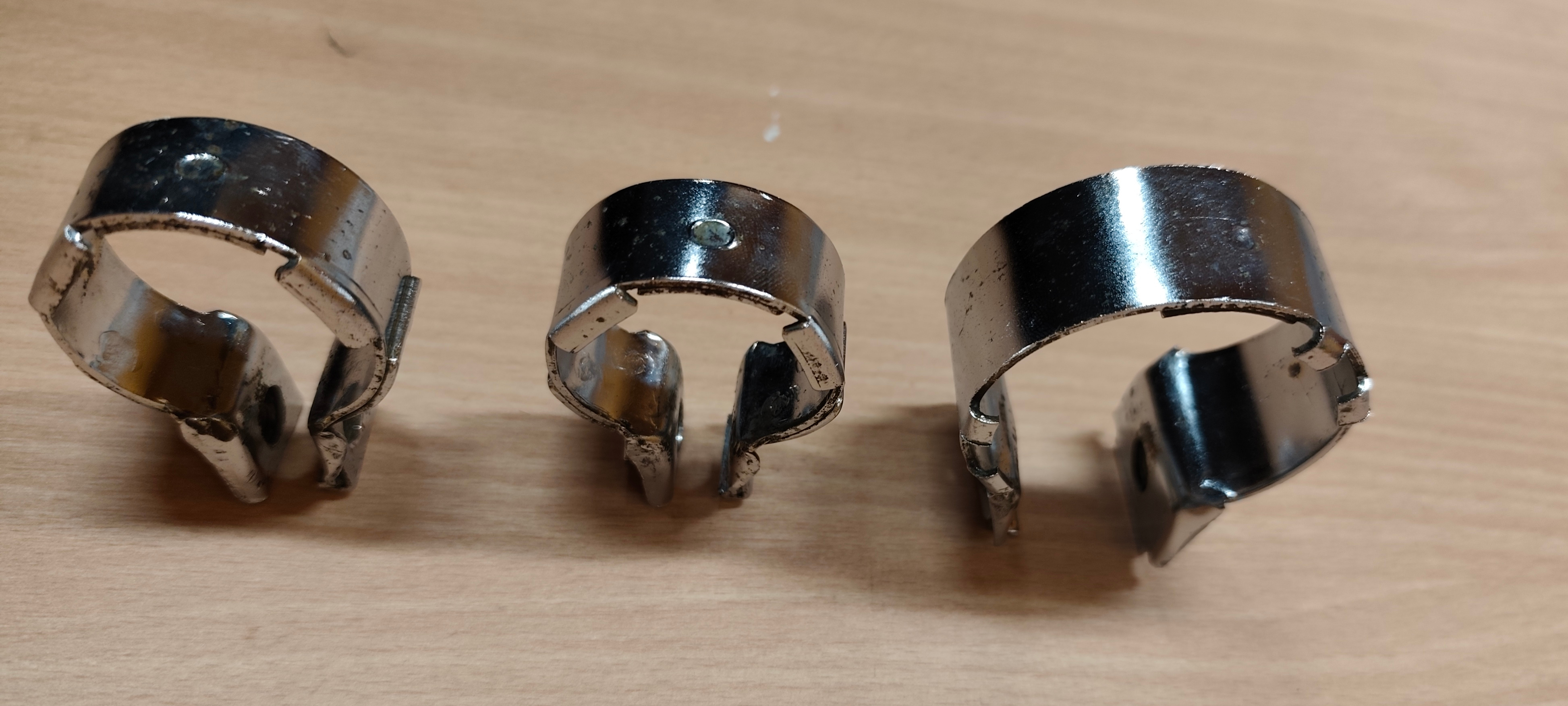 Die Klemmschalen lassen sich durch ein wenig Polieren nochmal schöner machen, hier rechts eine nach einfacher Politur:
